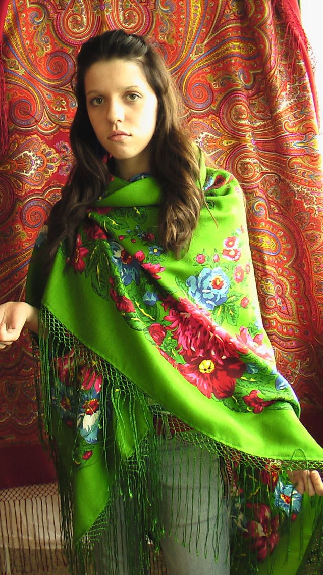 Демонстрируем ношение платков и шалей.
