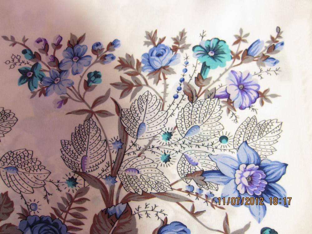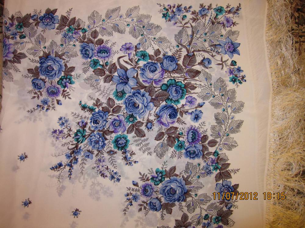 Самым большим и загадочным "китом" моей коллекции является ... покрывало из тонкой шерсти 200х146. Покупала сама в начале 80-х. Сейчас снимаю бахрому с этого чуда - пристрочила намертво! Знаю только одно подобное изделие - "Южная ночь" Л.С.Шаховской. Мое покрывало имеет орнаментальную кайму как на "Белых розах", поле настоящего апельсинового цвета, большая середина - светящегося лимонного, ярче, чем у "Подковы" 377-18. Фото будет чуть позже. Где бы почитать о покрывалах ППМ? Размерчик-то ого-го! <<