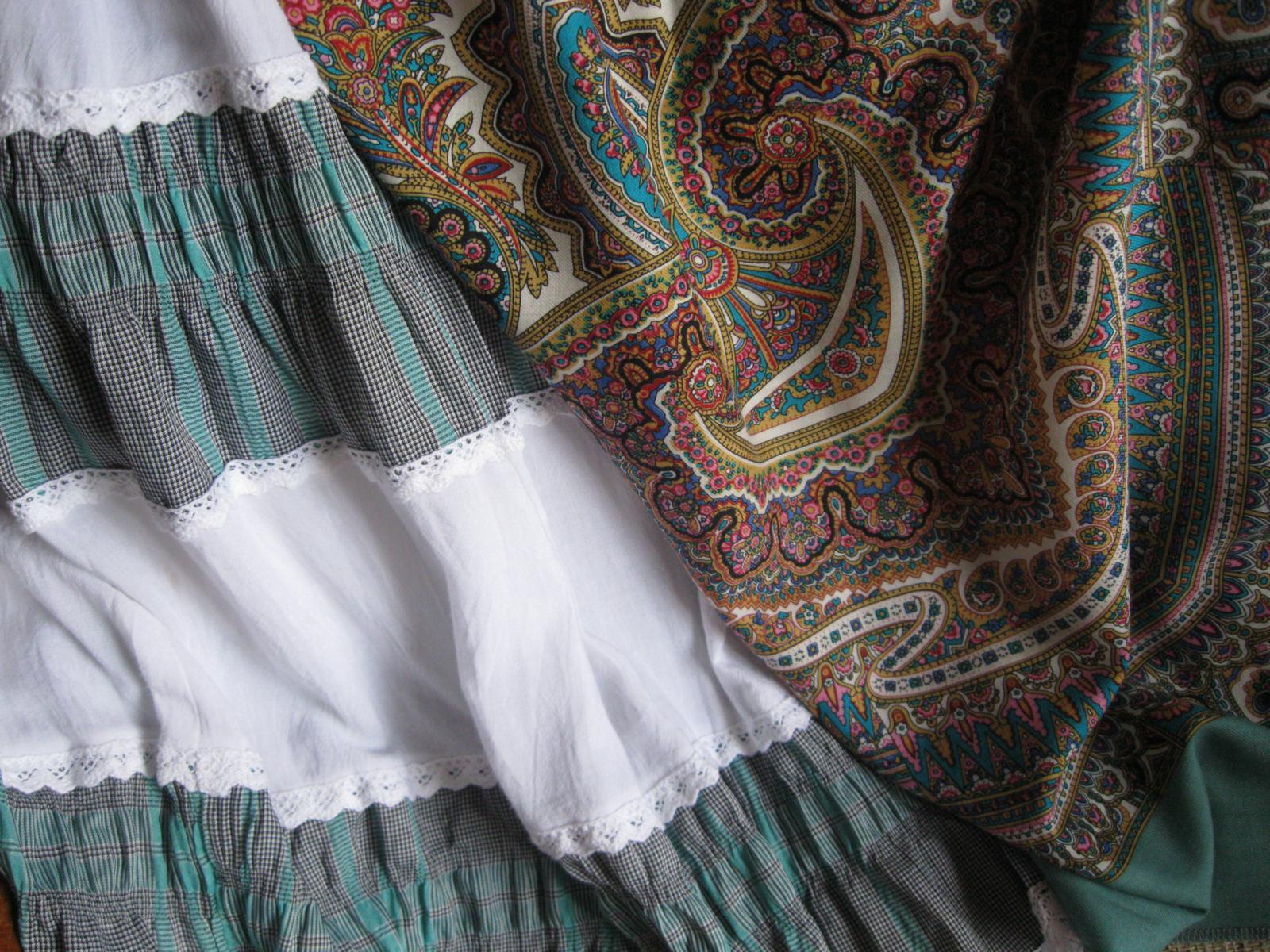 Ярусная юбка всё та же, а шаль: