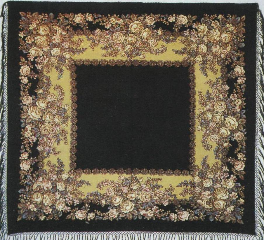 И судя по шерстяной вязаной бахроме - довольно старинная (раритетная) шаль. "Павлово-Посад" чувствуется явно.