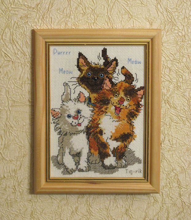 Потом в его кошачьей коллекции появились коврик «Кошка с клубком» от Vervaco: