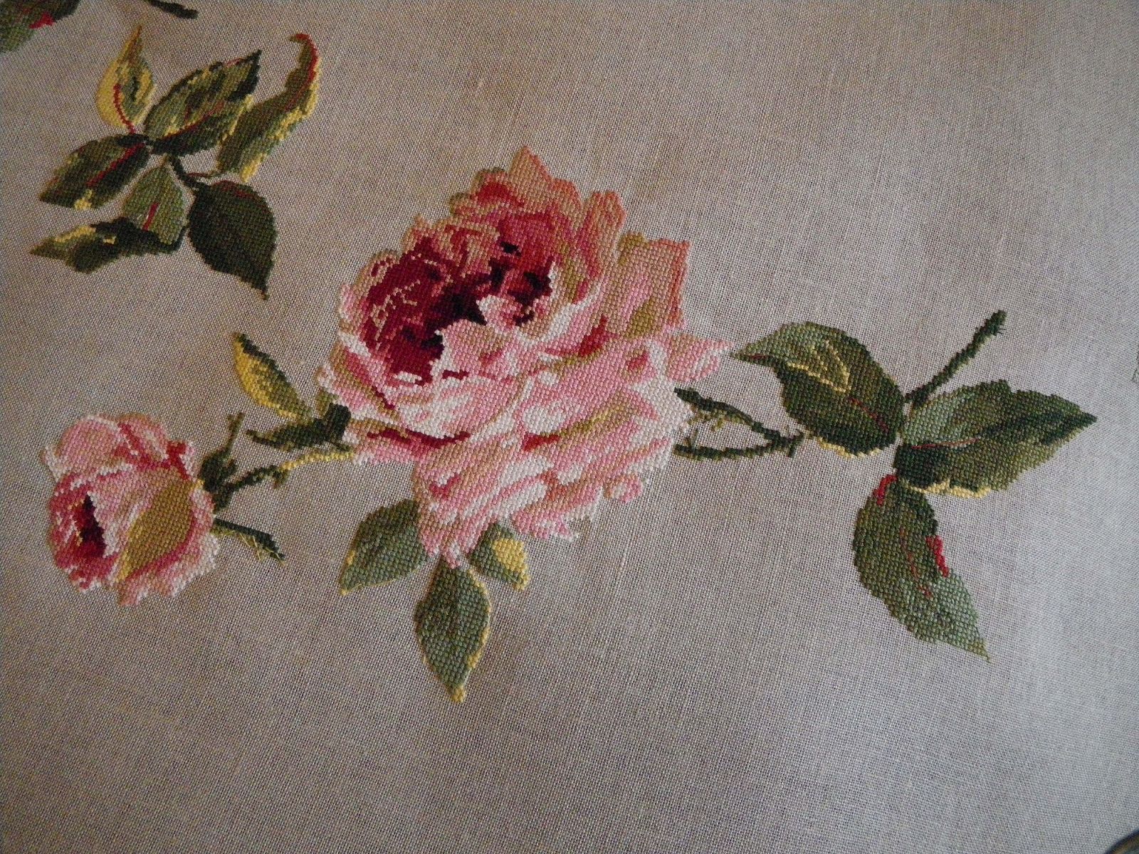 И на последок: скатерть на льне от DMC – работать над ней было просто наслаждение, хоть это и был первый опыт вышивания на льне.