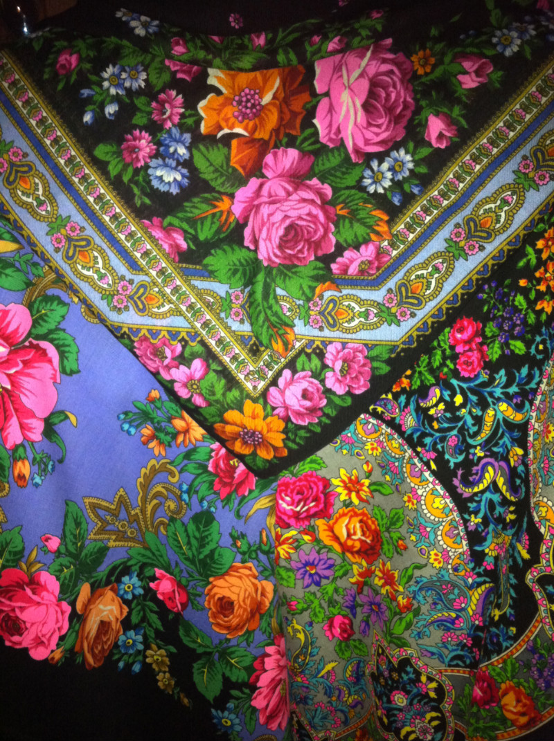 Sania... вот, как смогла, сравнила Павловские Розы и Летние Сумерки.... Качество - не очень, со вспышкой, но цветопередача верная... На Павловсих Розах цвета более спокойные, приглушенные по сравнению с буйством красочных родаминовых роз на Летних сумерках... Оба платка - красивы по своему, и они очень разные...