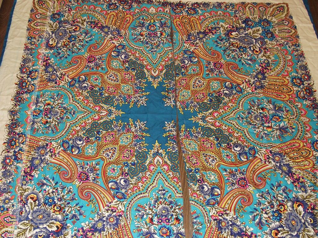 №15- 150х150, шаль 80-х годов с цв. мотивом на синем грунте, черным средником и каймойSimplyRed писал(а):А вот этот?