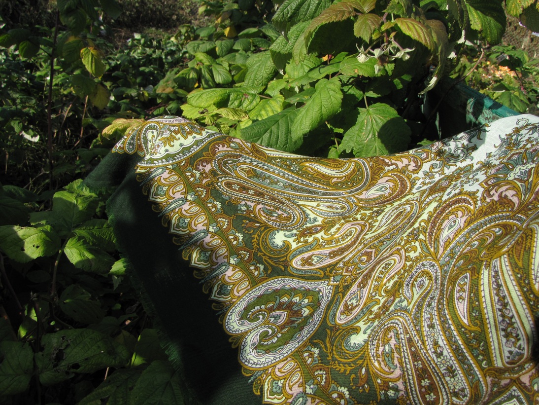 Mlava – красивый платок, но мне больше нравится с синим грунтом. Может потому, что он мне больше идет? А на фото хорошо видно, что грунт черный!