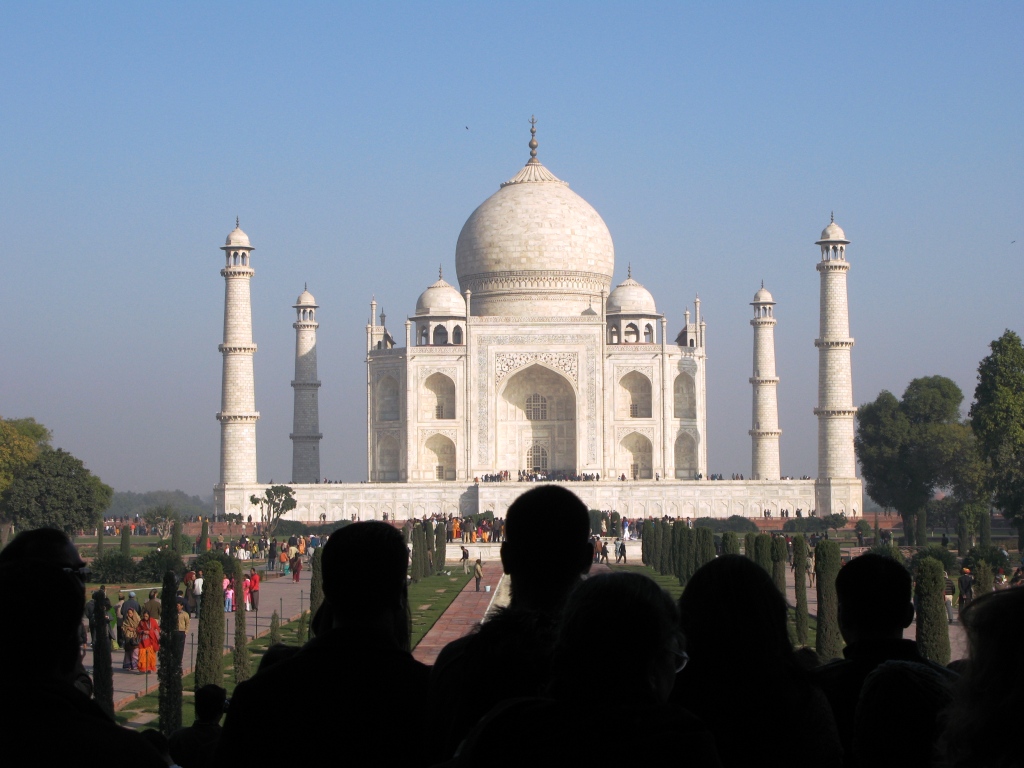 Видно, что туристов очень много, и местных, и иностранных. Дело было в ноябре, для Индии было довольно прохладно, около +15. Местные жители уже мерзнут. Видно, как кутаются в пашмины. А кое-кто в шапках (они жаловались нашим, что у них в первую очередь мёрзнут уши). При этом многие босиком.