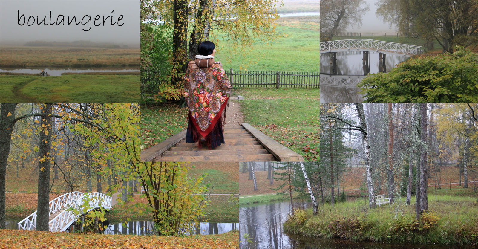 А я смотрю на свои коллажи и вижу в них какой-то "тайный" смысл. Например, в Михайловском мне предстоит пройтись по мостику, спуститься по лестнице, пройти вдоль забора и снова перейти мостик... и совсем нет времени посидеть на предложенных скамеечках.