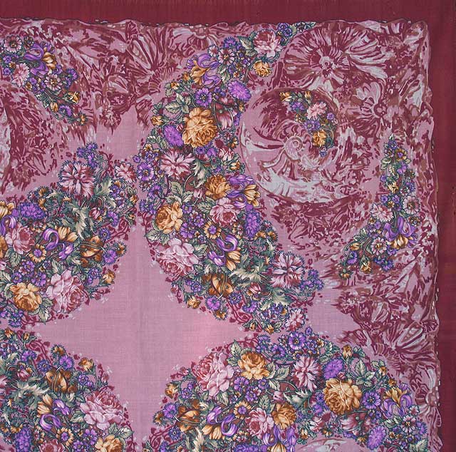 Да уж, попила эта шаль в свое время кровушки нашим печатникам... Она одна из первых многокрасочных шалей напечатанных на первой итальянской машине Реджиани, на запуске ее печатали сначала под руководством итальянского печатника. Он называл этот рисунок "французским" - там несколько низков, и все не в "наклад", а "навырез", и притрафить их друг к другу очень сложно.