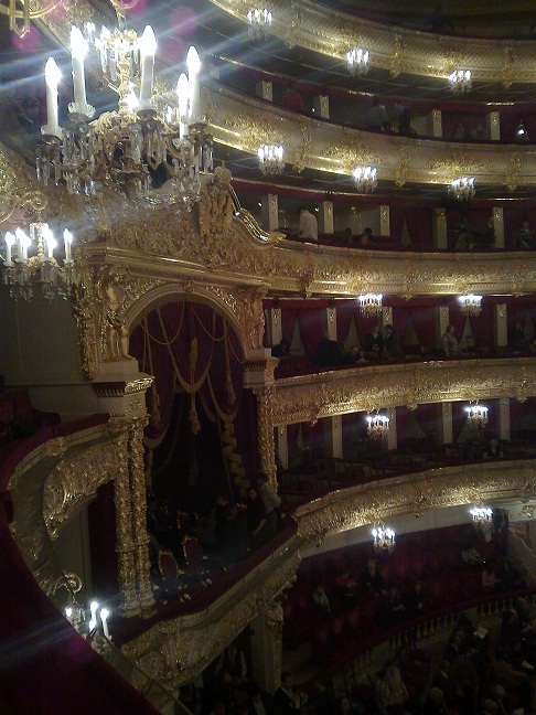 Доброй ночи! Тогда и я "присоединюсь" и добавлю фотографии с премьерного показа оперы "Руслан и Людмила" в Большом театре 19 февраля 2012 г. У меня - снято на мобильный телефон - качество не "ах", но фотографии - немного иного плана. Зрительный зал, ложи. Даже удалось сделать одно фото - "действие на сцене".