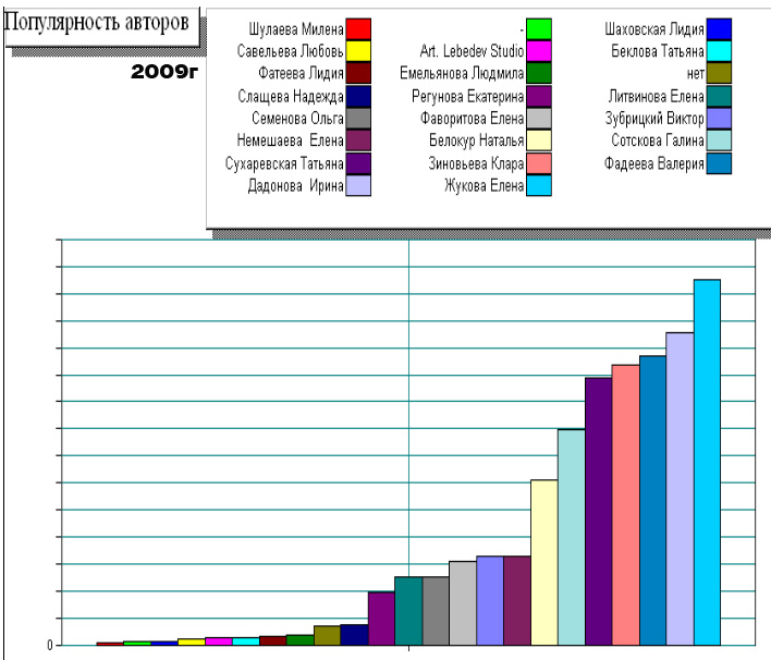 График, иллюстритрующий продажи изделий разных авторов в 2009г.: