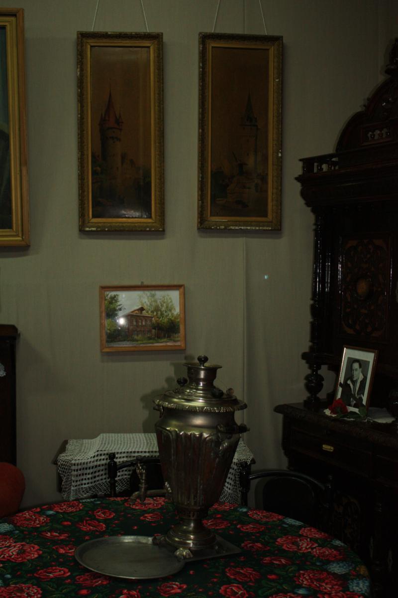 Вячеслав Васильевич Тихонов родился 8 февраля 1928 года в городе Павловский Посад. Дом, в котором жила его семья сохранился. В музее есть зал, а в нём уголок, в котором находятся предметы, принадлежащие семье. Вот этот уголок:
