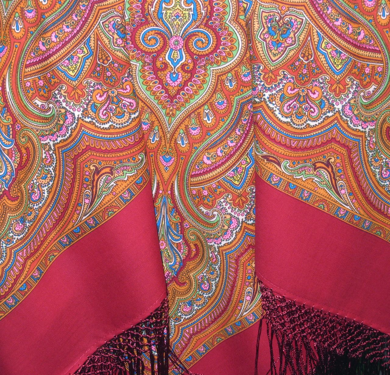Покажу поподробней обновленную (без бахромы) Финифть. Для себя поняла одно правило - если бахрома украшает платок то ей есть место быть, а если портит, то зачем ее беречь.. Необыкновенные Слащевские розы, светящиеся изнутри.