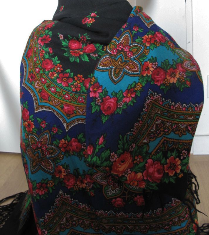 Покажу поподробней обновленную (без бахромы) Финифть. Для себя поняла одно правило - если бахрома украшает платок то ей есть место быть, а если портит, то зачем ее беречь.. Необыкновенные Слащевские розы, светящиеся изнутри.
