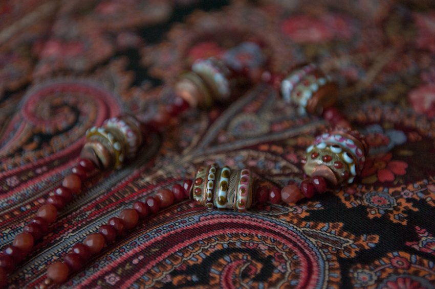 Попали-попали. Бусики уменя давно. А шаль - осенняя, свежая. Но масть одна.