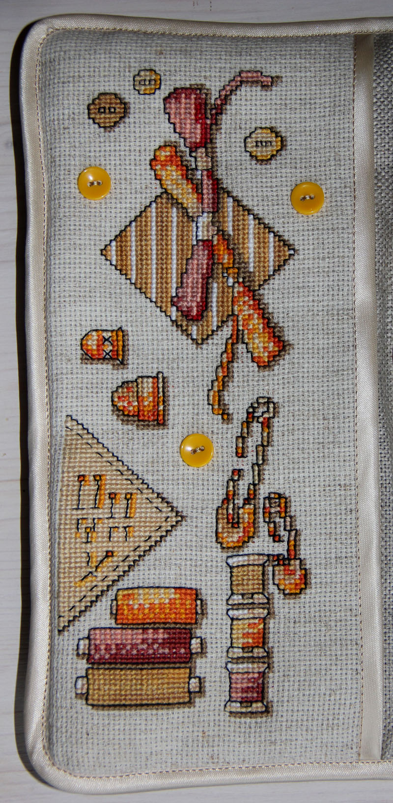 В органайзере пять "страниц". Пока общий вид "открытой книги". Да, а холст действительно очень красивый - это белорусская льняная канва. :Q