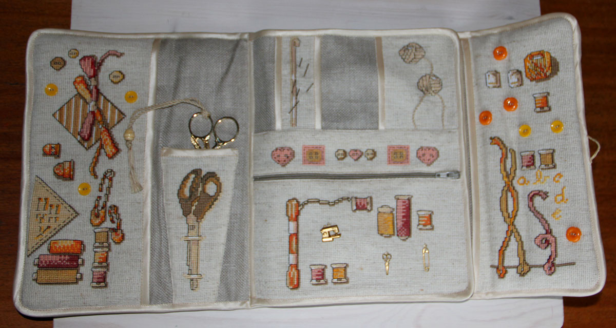 В органайзере пять "страниц". Пока общий вид "открытой книги". Да, а холст действительно очень красивый - это белорусская льняная канва. :Q
