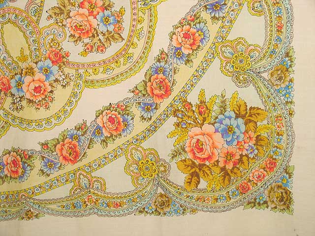 Роспись по шерсти. У светлых платков (и меня они особенно пленили!) чуть теплый оттенок фона.