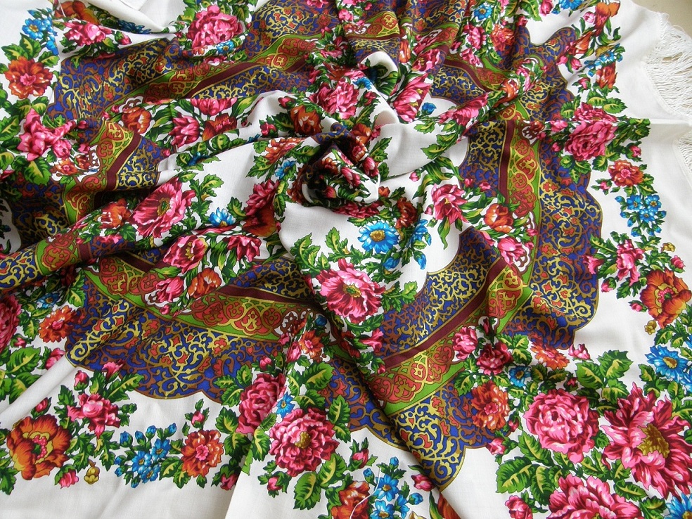 Ну, конечно-конечно! Сделаю кадр развернуто! :0: ^% Хотя композиция очень лаконична. Легкие букеты по краю платка и редкие розочки, парящие в центре.