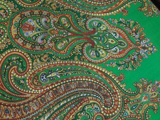 "Восточный калейдоскоп", 4 колорита : 1402-07 (коричневый), 1402-18 (красный), 1402 -14 (синий), 1402-10 (зелёный). Рассматривать их и правда, лучше не на фотографии, а в реальности. Самым интересным мне показался коричневый (можно сказать коричнево-бордовый...). Фотографии сделаны со вспышкой и без...электрический свет кое-где искажает цвет (в частности, синий на фото ярче, в реальности он глуше), но в целом - представление о платках по этим фото составить можно.