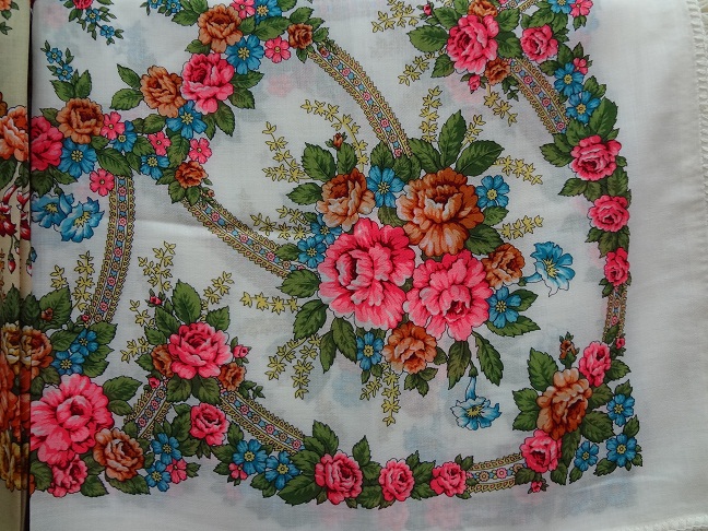 Новый платок сегодня появился в продаже (традиционно в обход основного каталога) - название платка "ВОЗВРАЩЕНИЕ" , автор Литвинова Елена, в "природе" пока два колорита - белый и желтовато-горчичный (белый 1480-0, горчичный 1480-1). Размер 125, бахрома шерстяная. При ближайшем рассмотрении (на мой взгляд) просматривается некоторая "близость" с "Ароматом лета" И.Дадоновой . На фото - при разном освещении....Розы - ярко-розовые родаминовые...