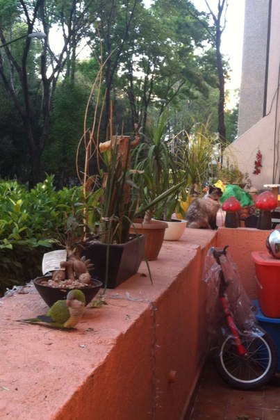 Какая выдержанная кошка! :o (Или очень сытая, или ленивая... :) ) А попугайчик симпатичный очень. Сидят себе такие, друг друга не трогают. Воспитанные звери. Интеллигентные. ^% ^% ^%