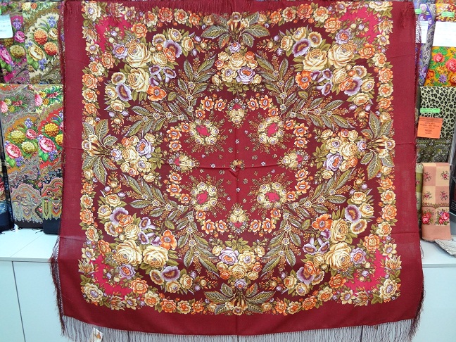 Ниже - фрагменты платков и как смогли...общий вид бордового. Их, надо, конечно, смотреть и примерять - синий - яркий, чёрый (для меня) тоже очень яркий. Какой-то "Миндаль" у нас есть похожего яркого колорита....