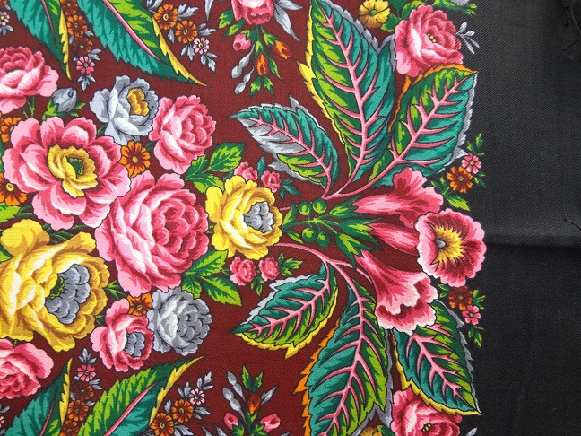 Ниже - фрагменты платков и как смогли...общий вид бордового. Их, надо, конечно, смотреть и примерять - синий - яркий, чёрый (для меня) тоже очень яркий. Какой-то "Миндаль" у нас есть похожего яркого колорита....