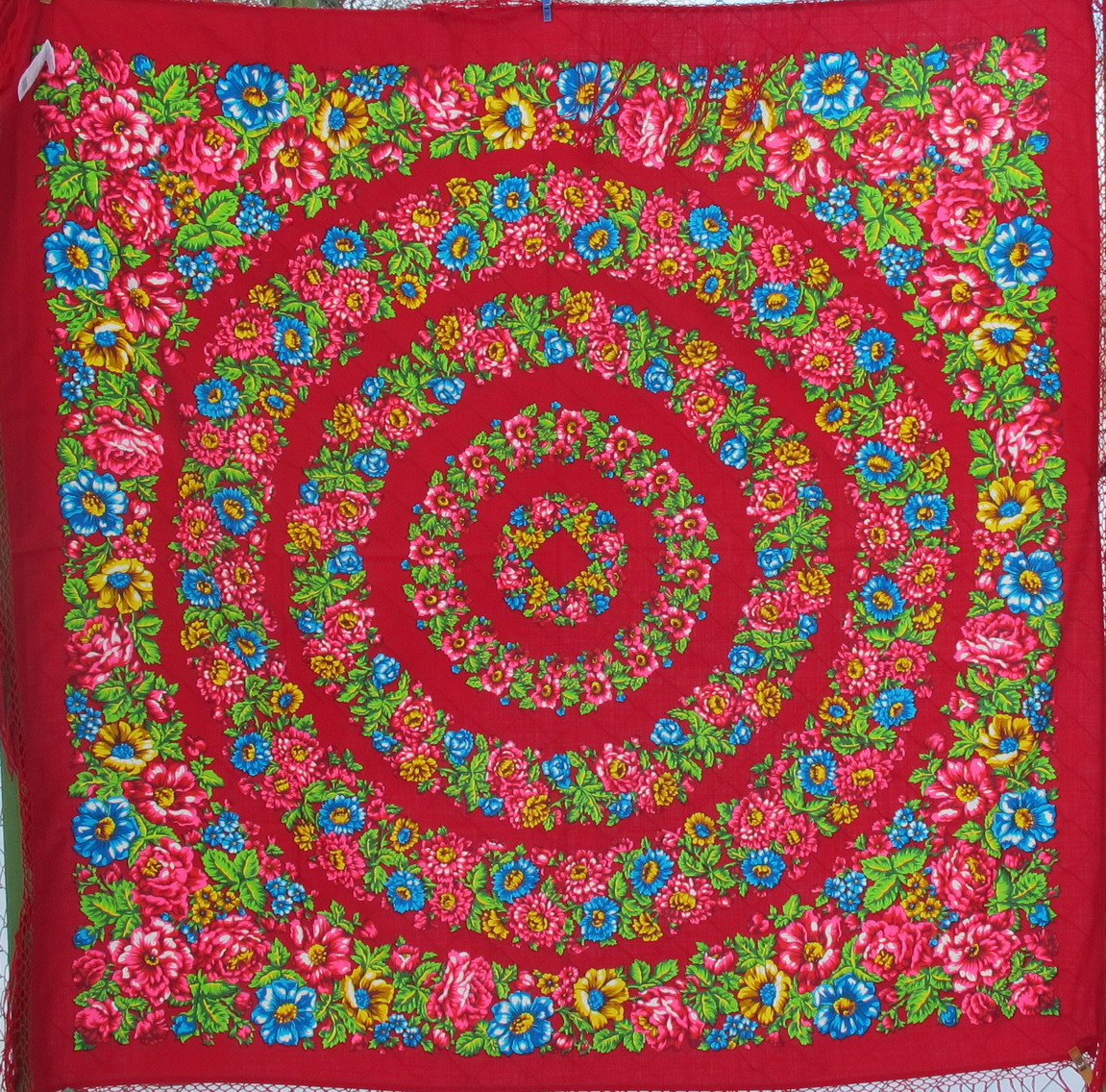 Видела и новые "Медальоны-4" слегка разбелённого алого цвета. Заметно, что бахрома более тёмного цвета, чем фон. Мне мои алые "Медальоны" нравятся больше. Но орнамент - гениальный в любом колорите.
