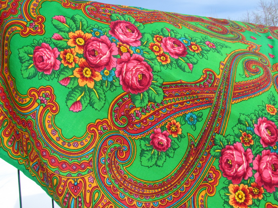 На Вернисаже в магазине обмолвилась, что на форуме обсуждается какой-то красный платок с восточным рисунком(еще даже название не знали), продавец мне ее вынесла и спрашивает - этот что ли? У меня глаза как у совы стали, конечно же схватила. Ее даже сравнить было не с чем. На витрине ее не было.