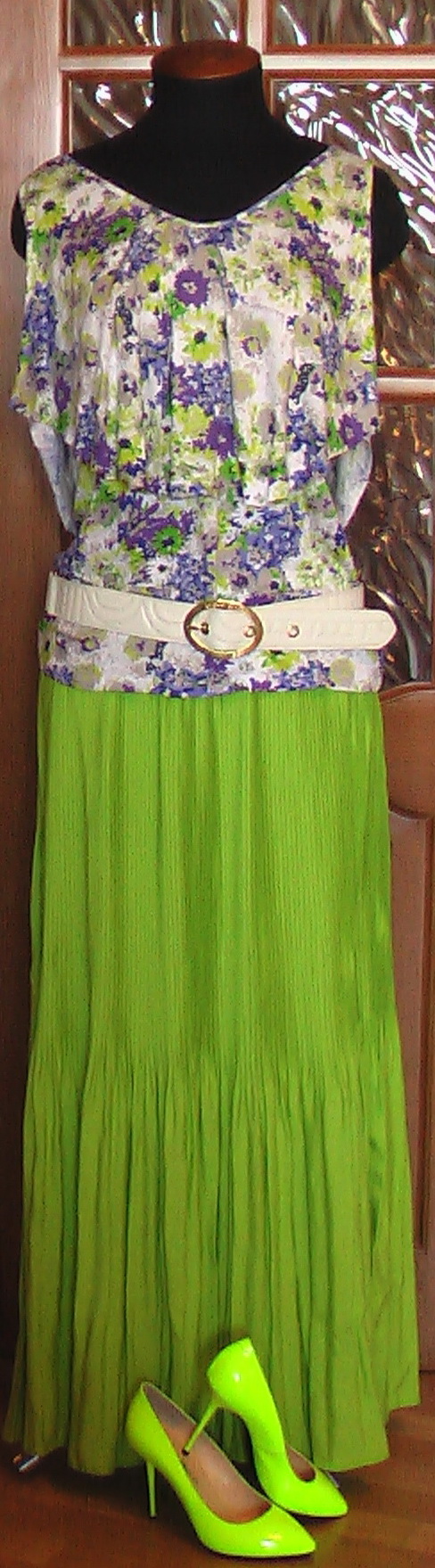 Понравилось сочетание туфли/шаль, и эта макси-юбка будет там не лишней, кмк. Но из-за того, что туфли закрытые всё же, я бы к юбке надела что-то не такое открытое как этот топ трикотажный, не знаю что. Но это был бы наряд на случай яркого нежаркого дня, и шаль тогда можно было бы примостить ( по погоде, в смысле)