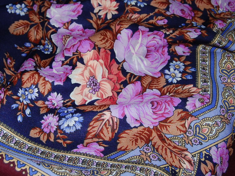 И мне кажется недооцененным платок Лето -1-5(Кликните, чтобы почитать, что спрятано под катом)... Чисто цветочный традиционный рисунок в красном колорите выглядит очень стильно. Надеть его можно куда угодно и с чем угодно.