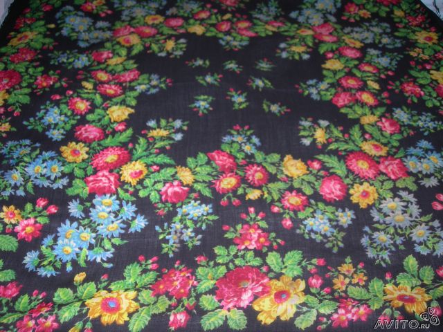 Продается на молотке шаль 70-х гг. 145*145, ручной набойки. Вкусная