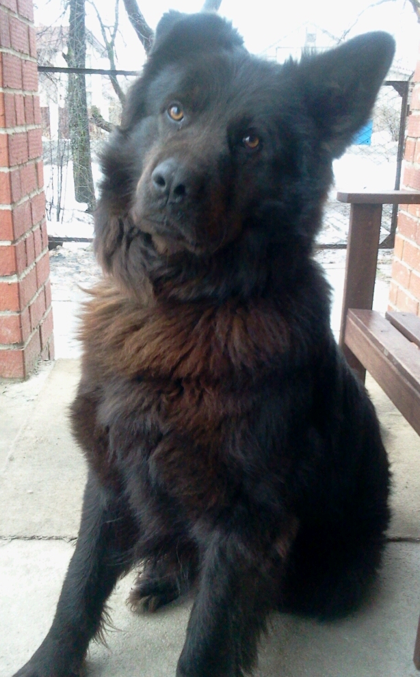 Агата, этого песика в свободный выгул нельзя. Он только во дворе, да и то, пока цветочки не посажены. Гуляем с 5-00 до 7-00, а днем на цепи ^V^