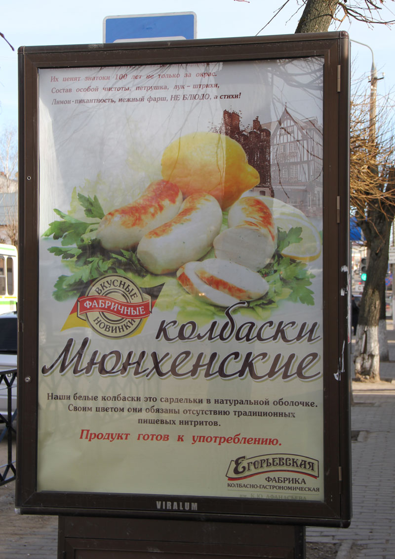 Весь город увешан рекламой новинки - Мюнхенские колбаски (белые, из свинины без нитритов, с добавлением лимонного сока и петрушки).