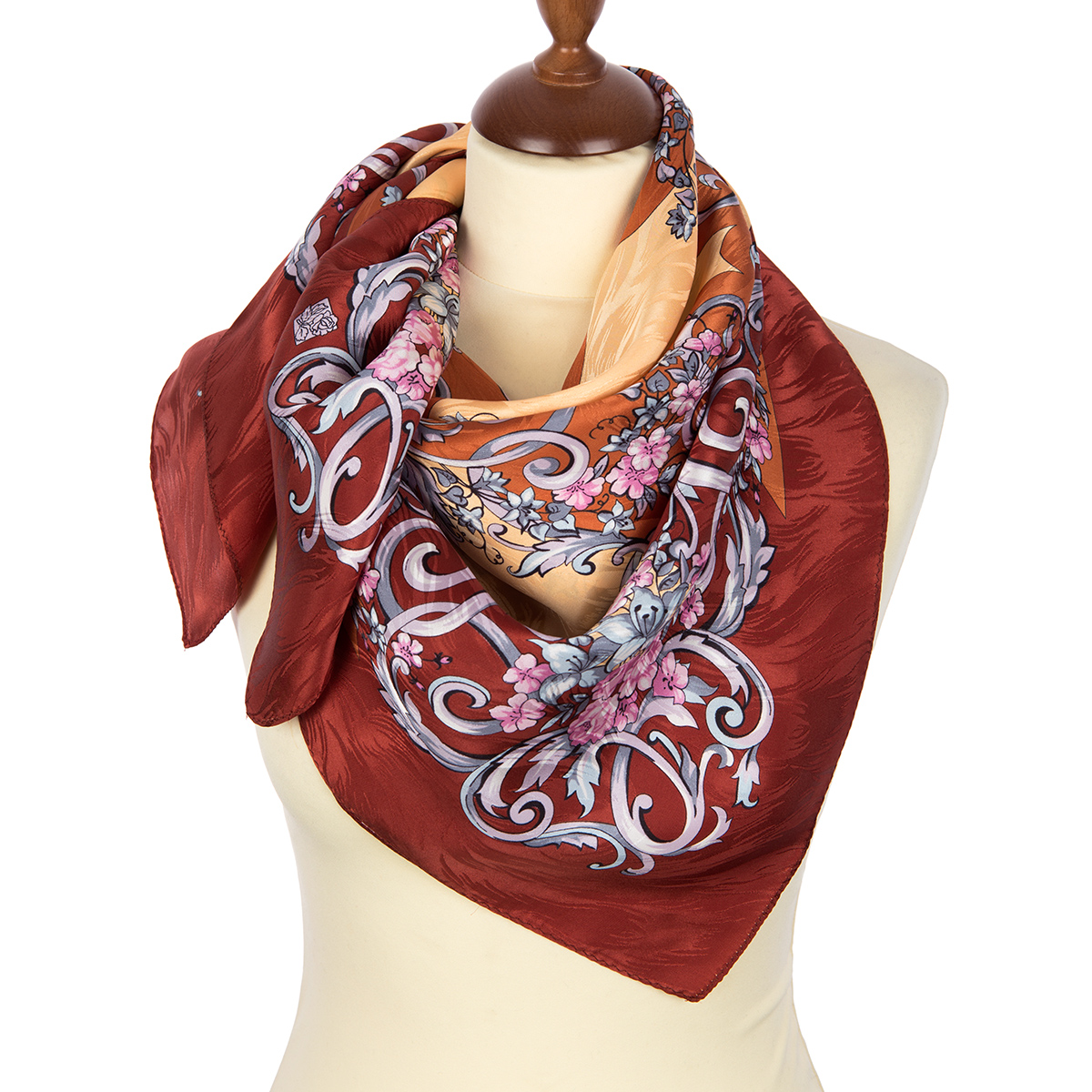 Шаль шёлковая (крепдешин, бахрома) 130х130