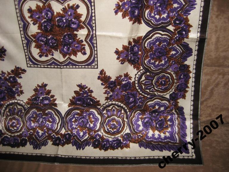 А вот плат 98х98, по словам хозяйки, 85 года. Говорит, что павловопосадский, но подтверждений тому нет. Бахрома, возможно, самодельная.