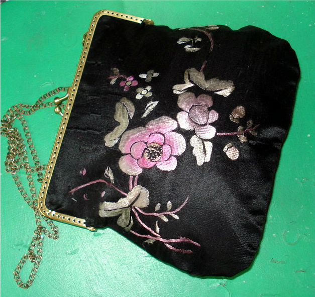 Мое вчерашнее рукоделие. Сшила сумочку в винтажном стиле из очень старого шелкого вышитого кусочка платья, которое принадлежало дочери Молотова. Оно, вероятно, было очень любимым, потому что изношено до дыр, даже заплатки стоят