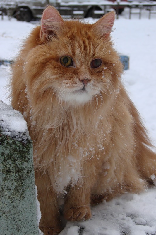 Ника, довелось мне несколько лет ухаживать за папиным котом, которого он нам оставил на две недели, уезжая в отпуск. Очень он был пушистый, длинношёрстный и страшно запущенный. Просто валенок! Я была в тупом шоке, что домашнего зверя можно довести до такого. Поэтому, папеньке было сказано, что пока мы Кешу не доведём до состояния выставочного образца, не вернём. Человека с расчёской кот не подпускал к себе ближе чем на метр. Кое-что было просто невозможно расчесать, приходилось выстригать. А потом пришлось мыть. Я думала, что для этой процедуры понадобятся доспехи, но он спокойно сидел в тазу. Последний свой год Кеша болел и мыть его приходилось очень часто. Нельзя сказать, что он купание полюбил, но привык. Зато расчёску и фен ненавидел до последних своих дней. Кот так у нас и остался, папенька справедливо решил, что у нас ему будет лучше. Котик был уже старенький. Это фото напечатали в газете "Усы. Лапы. Хвост" через несколько дней после его смерти.... Я в голос рыдала, стоя над пачкой газет у метро..