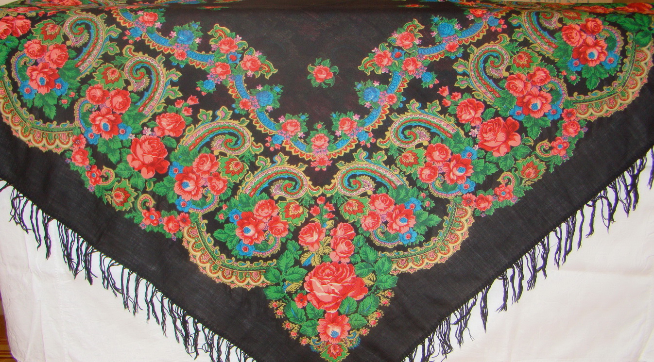 Я знаю, что в советское время "расписные" шали и платки выпускали во многих советских республиках. Например, шерстяные - на Чарджоуском камвольном комбинате (Туркмения), а хлопчатобумажные белопольные были очень популярны в Казахстане. А в тогдашней Чехословакии выпускались платки с просновками, очень похожие на ПП, только ткань была "смесовая" ( шерсть с хлопком, хлопок со штапелем, в 80х - синтетика в чистом виде). И конечно же, во многих семьях все ещё хранятся эти красОты. Эх жаль, на все не полюбуешься