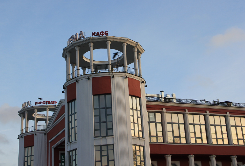 Буду исследовать город дальше - хочу увидеть "сплошную фасаду" и кинотеатр "Звезда" с противоположного берега. А кинотеатр по внешнему виду напоминает бинокль. Такие же здания по архитектуре есть в Симферополе (кинотеатр "Симферополь"), в Смоленске (кинотеатр "Октябрь") и в Москве схожий по внешнему виду фасада (кинотеатр "Родина").