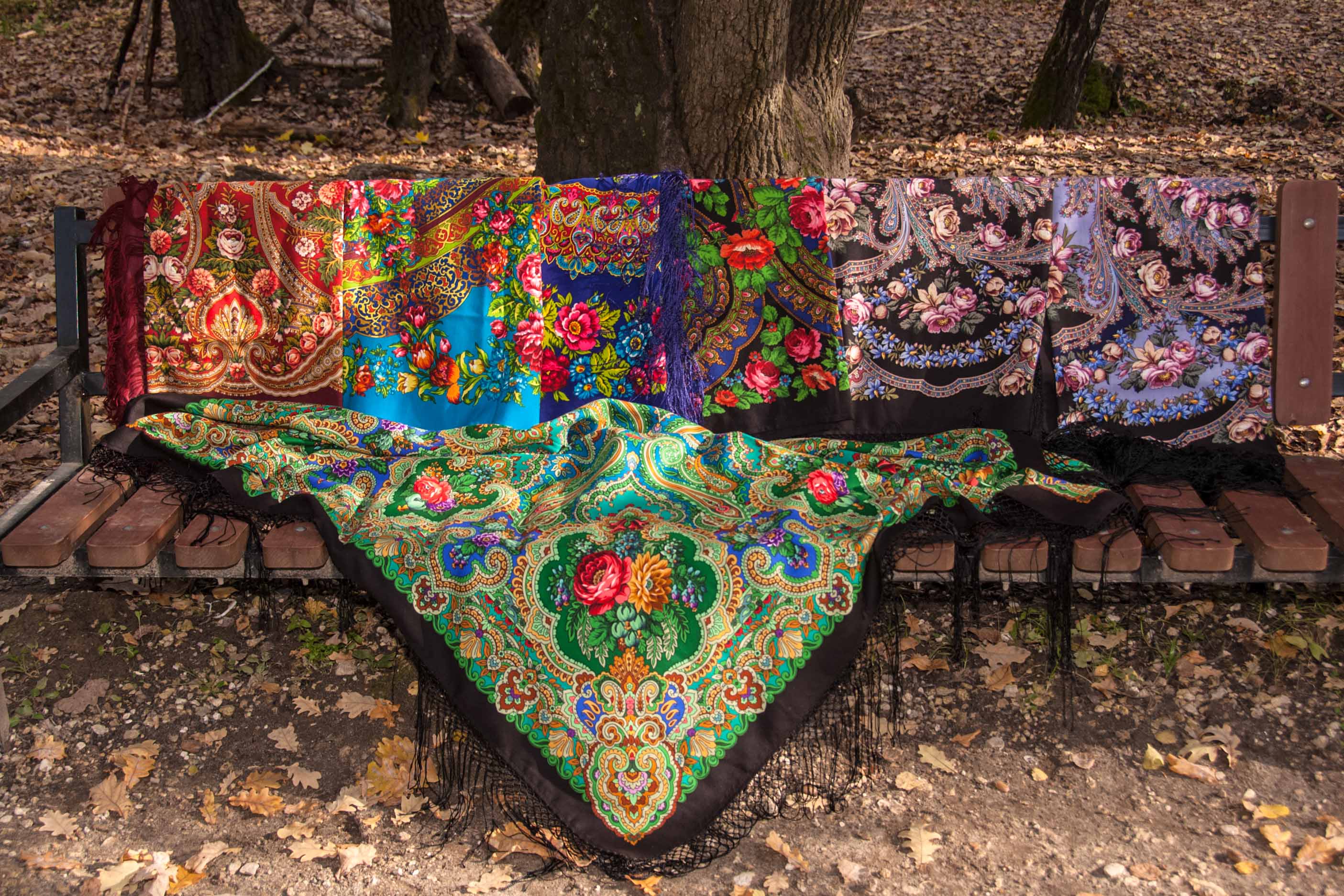 Шали из моего сундучка (слева-направо, центр)