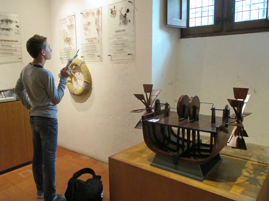 В нескольких залах полуподвального помещения выставлены макеты устройств, изобретённых Леонардо - куча всего из области военного искусства, гражданского строительства, машиностроения, оптики, гидравлики, аэродинамики...