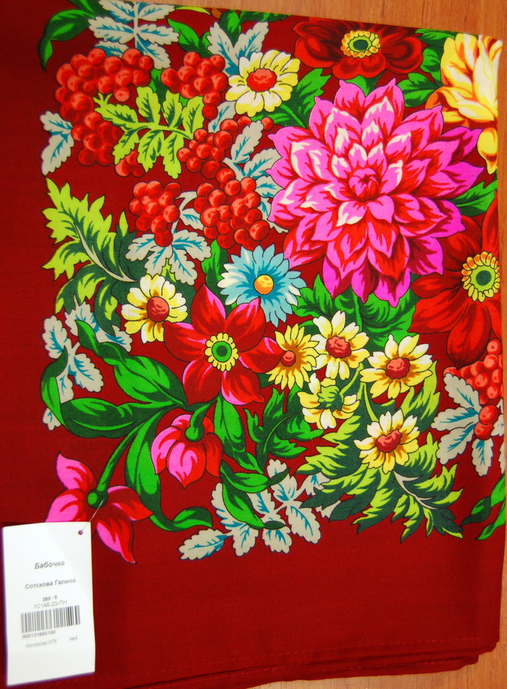 Галина Сотскова - вряд ли, т.к. Рябину для машинной печати перерабатывала сама Екатерина Регунова, насколько помню. Если только кроки эти были утрачены (что сомнительно).Natasik писал(а):Девушки, вот попался мне на глаза такой вот платок. По рисунку похож на "Рябину" ,как показывала Алла viewtopic.php?f=3&t=86&start=3120#p15274, но на этикетке, которая прикреплена к нему, написано следующее: "Бабочка" Галина Сотскова рис. 385-5. Это неверная этикетка? (платок из уплотненной шерсти, без кистей).