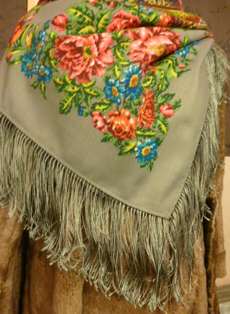 Что-то намоткой этот платок у меня не выходит. Там довольно крупные цветы и узор в стиле модерн. В намотке все пропадает.А Чеканковская бахрома получается довольно тяжелой. Вчера видела в магазине Мадонну с бахромой. Такая, как у всех просновочных. Простая.