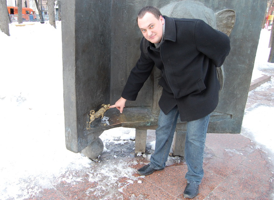 В мае этого года. Немного странновато памятник смотрит на церетелевских коней, купающихся в фонтане.