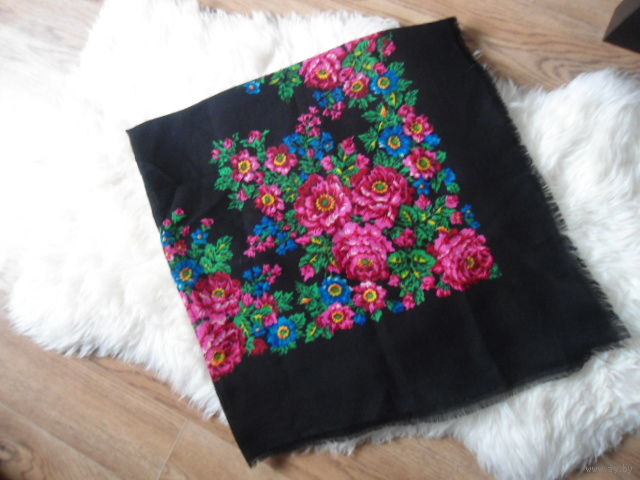Весёленький такой, традиционный платочек из самого настоящего БС. Надеялась, что у нас есть такой рисунок. Но, увы, пока не нашла... Размер 150х150, думаю...