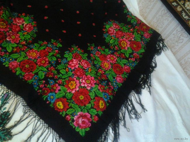 Весёленький такой, традиционный платочек из самого настоящего БС. Надеялась, что у нас есть такой рисунок. Но, увы, пока не нашла... Размер 150х150, думаю...