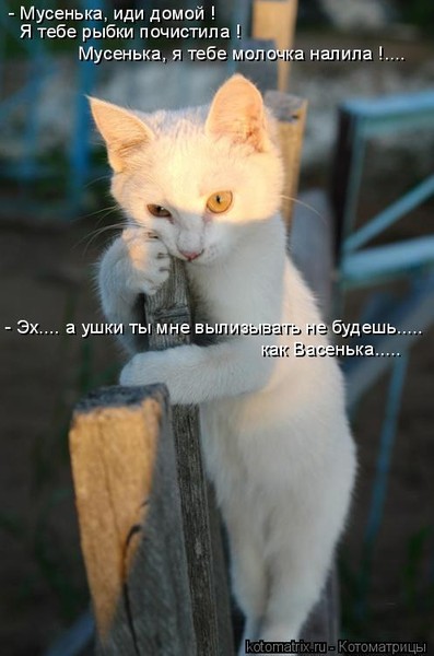 5. Кот Мурзик просился на волю! Подозреваю, что не к кошкам. Бедняга давно позабыл о коварной щедрости хозяйки и теперь, как полноправный член семьи, тоже питается диетическими продуктами. Просится на улицу. Там водится настоящее, а не соевое мясо.