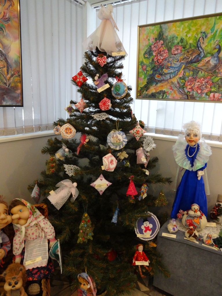 Сегодня была на выставке "Волшебная нить". Среди экспонатов есть работы с новогодней тематикой.