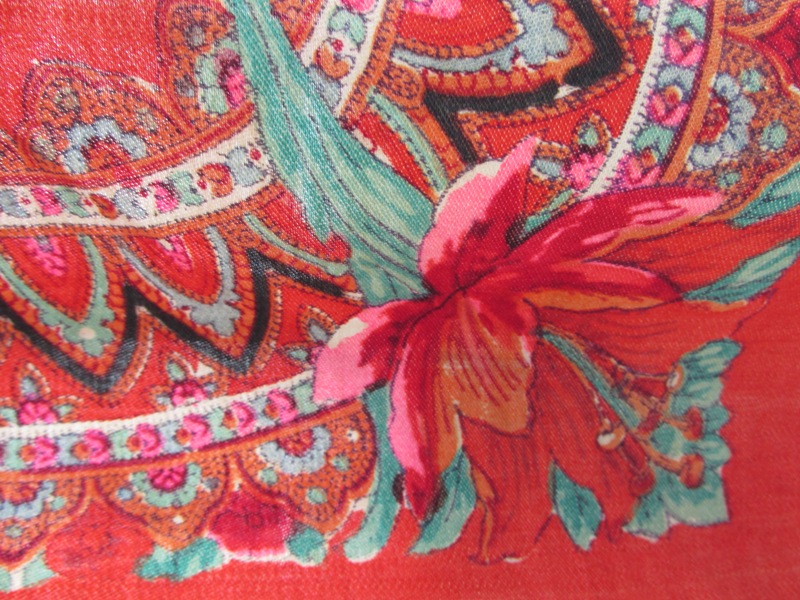 Понимаю, что это редкие платки, и сравнение это бессмысленно , но ,думаю, что Вам, как и мне, интересно воочию увидеть, как неизбежны отличия даже в рисунке, которые появляются при ручной набойке платков...